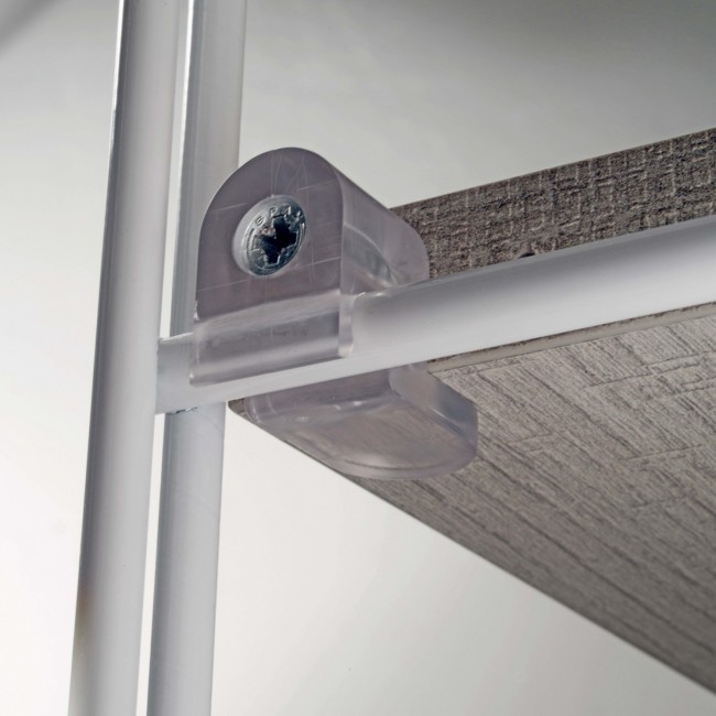 Link PC è disponibile nel modello a 2 o 3 ripiani, a seconda della composizione desiderata varia la struttura e lo spazio occupato. Nel primo caso infatti la mensola è alta 91 cm ed è sospesa a parete, nel secondo caso l'altezza si fa più importante, raggiunge i cm 185 e appoggia a terra.
