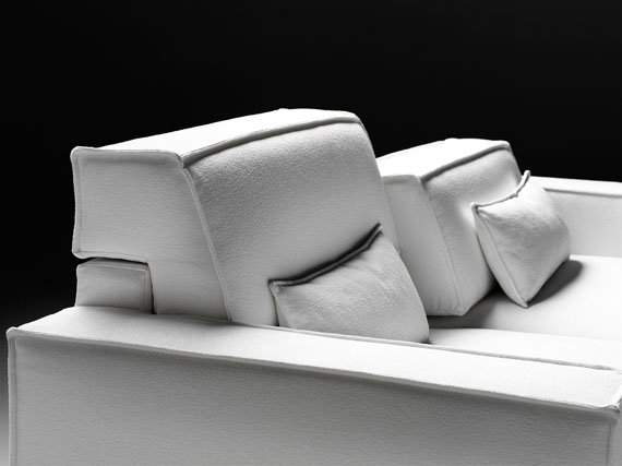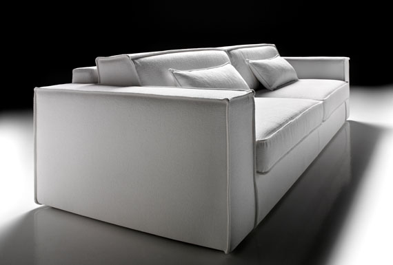 profonda e lo schienale si alza. Struttura schienali e cuscini di disegno rigoroso arricchiti dalle cordonature dei bordi.