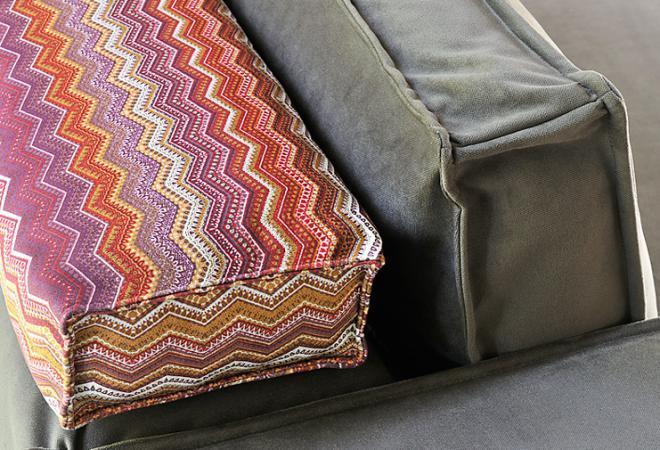 Imbottitura schienali: cuscini bifacciali in mistopiuma in camere separate rivestiti in tela di cotone