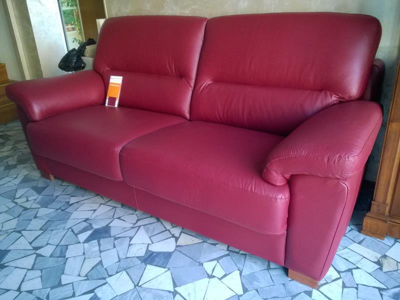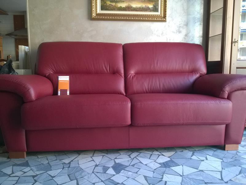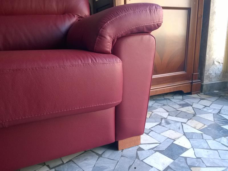 Divano mod. Fly in pelle color bordeaux, piedini in legno.