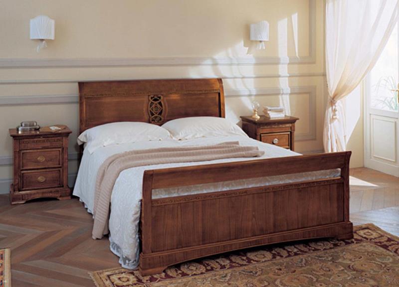 Di ispirazione dei primi trent’anni del XVIII secolo ,Il letto ha una struttura completamente in legno, con preziosismi di tarsia ed intagli tali da renderlo unico nel suo genere.